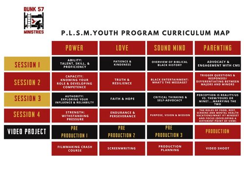 Bunk 57 Ministries P.L.S.M. Youth Program goals are to equip minority males ages 12 -17 years of age with the social and emotional regulation skills they need to build healthy relationships, break intergenerational cycles of violence, addiction, and other high-risk behaviors. By the end of the program, participants should be able to: